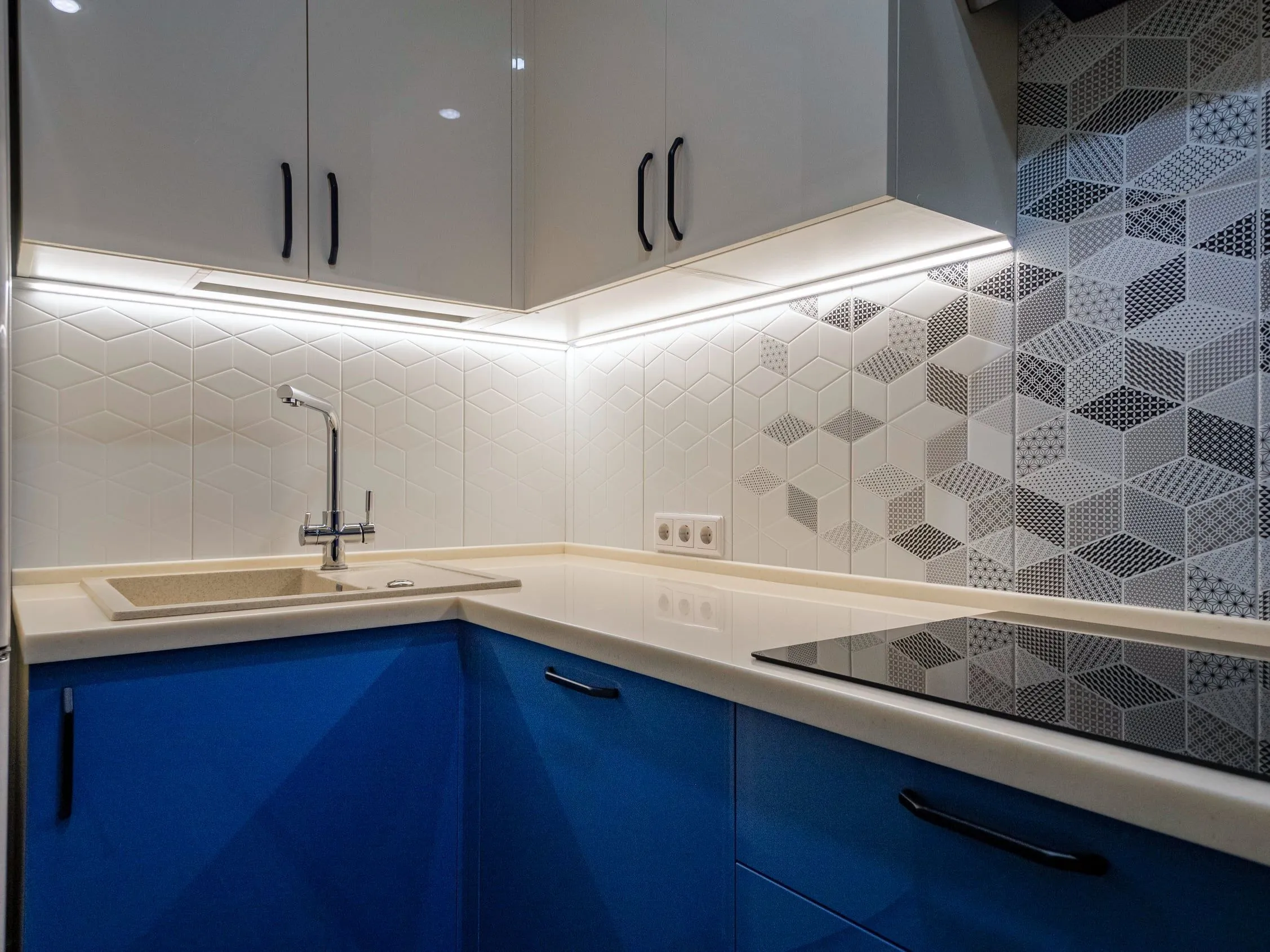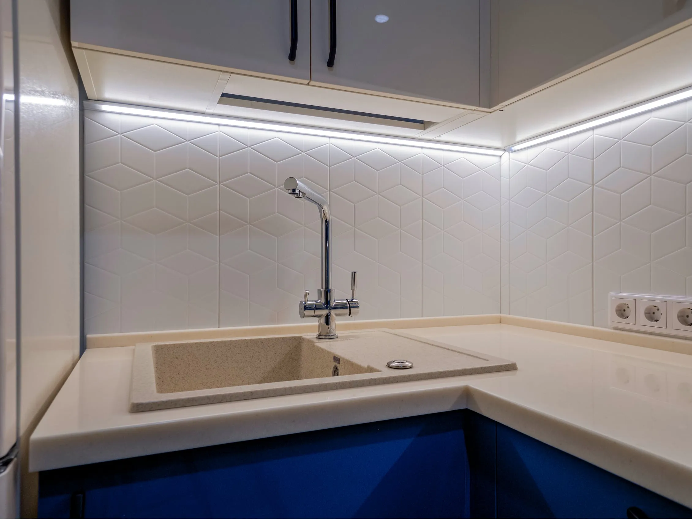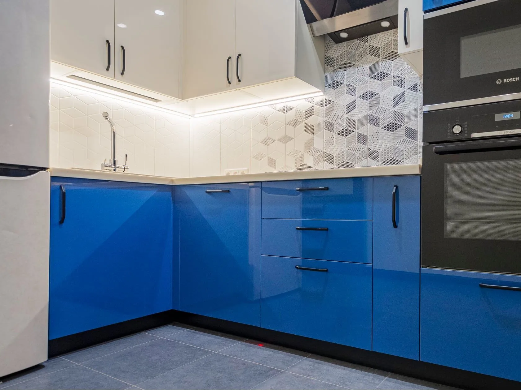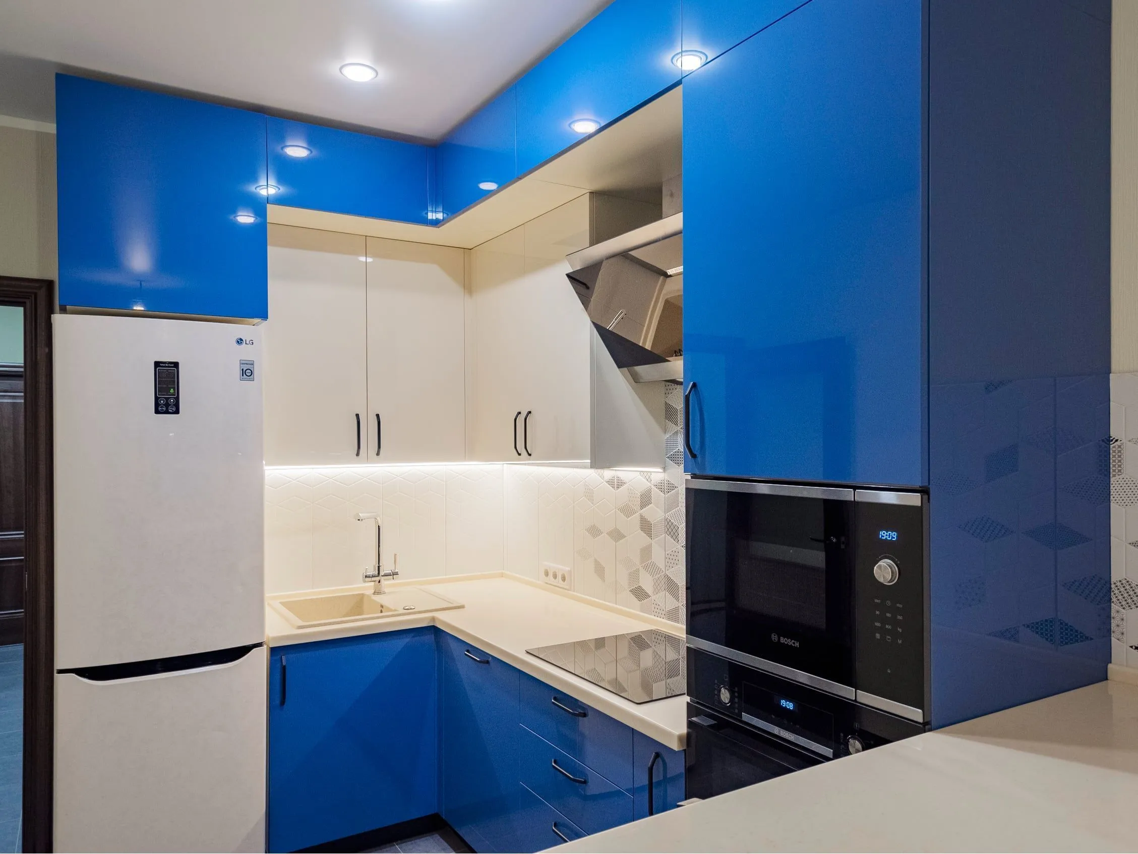 Фасады: МДФ Акрил-5 Аквамарин / МДФ Акрил-5 Сливки